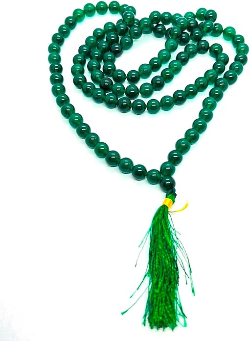 It promotes emotional balance, peace and positive energy and acts as a protective shield against negative energy. It is associated with Heart Chakra encouraging love, compassion empathy and harmonious relationships. Physically benefits the respiratory system, Skin, Kidneys and fertility thus aiding in longevity. During meditation and mantra chanting with this rosary it enhances concentration, which deepens spiritual and emotional clarity.